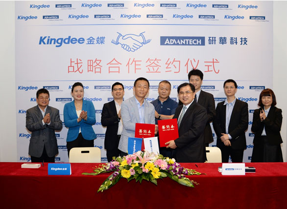 2017年4月13日,金蝶集團與研華科技在深圳正式簽訂戰略合作協議,以“軟件+硬件”、“ERP+物聯網(IoT)”提供“工業4.0”框架下的“智能生產”與“智能工廠”方案,旨在幫助中國傳統制造業在“奔跑中切換跑道”,實現企業從“制造”向“智造”的平滑升級,助力“中國制造2025”。