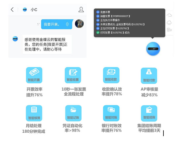 2.接入AI交互服務(wù),智能財(cái)務(wù)機(jī)器人小K提供AI語(yǔ)音服務(wù)基礎(chǔ)設(shè)施、開(kāi)票服務(wù)、銷(xiāo)售及庫(kù)存查詢(xún)服務(wù)和發(fā)票智能接收等服務(wù),引領(lǐng)財(cái)務(wù)機(jī)器人2.0時(shí)代。