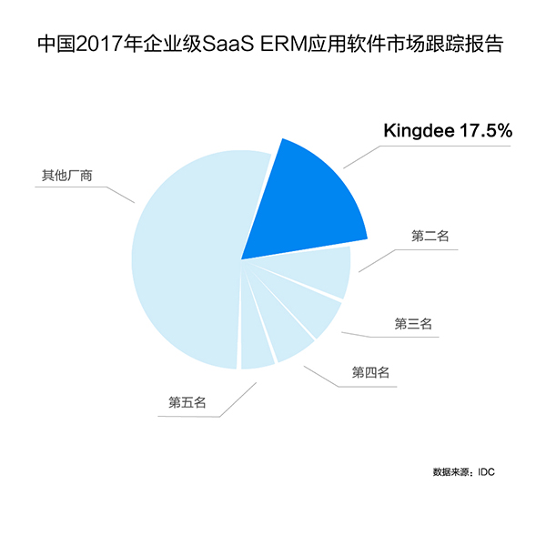 IDC另外一份報告《中國半年度企業(yè)級SaaSERM應(yīng)用軟件市場跟蹤報告》(2017下半年)還顯示,2017年全年金蝶在SaaSERM以17.5%的占有率排名,在SaaS財務(wù)云市場占有率更高達43.56%,超過第2到15名同行廠商的云收入總和。這是繼2016年后,金蝶再次取得了整體企業(yè)級SaaS、SaaSERM和SaaS財務(wù)云的三料冠軍。