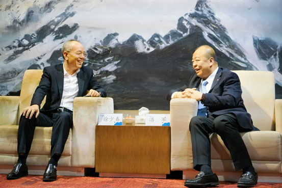 金蝶集團創始人、董事會主席徐少春與花樣年集團董事局主席潘軍交流。