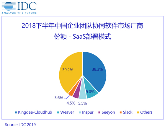 6月10日,全球知名信息技術(shù)咨詢公司IDC發(fā)布新《2018年下半年中國企業(yè)團(tuán)隊(duì)協(xié)同軟件市場跟蹤報(bào)告》。報(bào)告顯示,中國企業(yè)采用SaaS協(xié)同軟件的復(fù)合增長率為35.3%,增速遠(yuǎn)高于傳統(tǒng)部署模式,到2023年,SaaS模式的企業(yè)團(tuán)隊(duì)協(xié)同軟件市場份額將上升為31.8%。目前,金蝶云之家(Kingdee-Cloudhub)是中國企業(yè)團(tuán)隊(duì)協(xié)同SaaS軟件市場的領(lǐng)導(dǎo)品牌,市場份額為38.3%排名,超過第二名至第五名的總和。